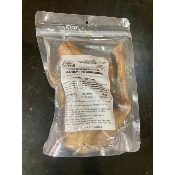 GARRÃO de Cordeiro DefumadaPeso Liquido 200grOBSERVAÇÃO:Produto natural, possui variação de tamanho, formato e cor.ESTE PRODUTO NÃO SUBSTITUI O ALIMENTO COMPLETO.PRODUTO ISENTO DE REGISTRO NO MINISTÉRIO DA AGRICULTURA E PECUÁRIA.USO PROIBIDO NA ALIMENTAÇÃO DE RUMINANTES.ARMAZENAMENTO E CONSERVAÇÃOManter em local seco e arejado, ao abrigo da luz do sol e calor.Após aberto consumir em até 15 dias. Peso da embalagem: 12 gPRODUTO EXCLUSIVO PARA CÃES E GATOS SAUDÁVEIS.SEMPRE SURPEVISIONE DURANTE O USO.Caso apresente sangramento nas gengivas o uso deve ser descontinuado. Consulte seu veterinário de confiança.