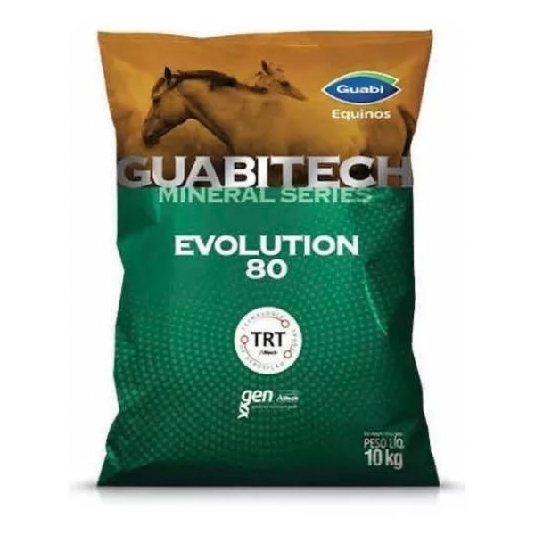 Suplemento mineral completo com 8,0% de fósforo, pronto para uso, Guabitech Evolution 80 é formulado com fosfato bicálcico, macrominerais de qualidade superior, 100% de microminerais orgânicos (selênio, zinco, manganês e cobre) e vitaminas A, D e E, para atender as necessidades minerais e vitamínicas de equinos, em todas as fases da criação.