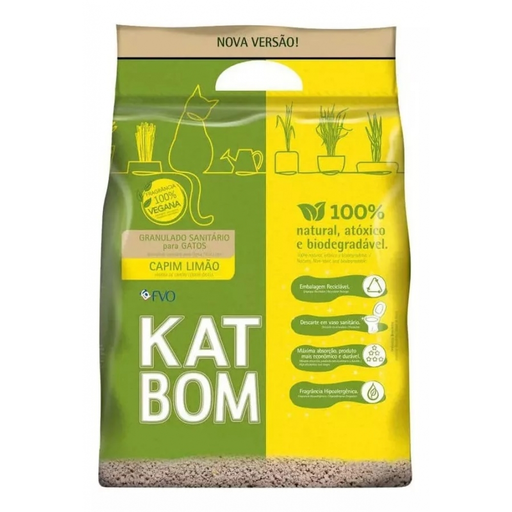 Areia Higiênica KatBom Capim Limão é um granulado sanitário natural de qualidade superior, especialmente desenvolvido para a higiene dos gatos.