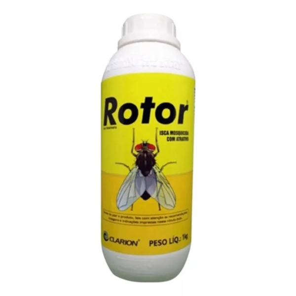 Rotor® é uma isca mosquicida ideal para o controle de moscas em ambientes infestados, tais como: granjas de aves e suínos, haras, abatedouros, currais, estábulos, laticínios, etc.INDICAÇÕESRotor® é indicado para o controle de mosca doméstica (Musca domestica) em instalações rurais como: granjas de aves e suínos, haras, matadouros, currais, estábulos, laticínios e outros locais infestados por mosca doméstica.MODO DE USAR• Espalhar os grânulos de Rotor® no piso dos locais com maior incidência de moscas na proporção de 2g para cada m2, ou seja, 25g para cada 12,5m2 de área.• Nos locais onde não é possível espalhar os grânulos do produto no piso, recomenda-se colocar o produto em recipientes plásticos ou de papel, com aproximadamente 3g em cada um, o que tratará em média uma área de 1,5m2, distribuindo-os em locais estratégicos junto a prateleiras, bancadas, rodapés, janelas ou em outros locais freqüentados pela mosca doméstica, sempre fora do alcance de animais domésticos, crianças e pessoas desinformadas.• Periodicamente deve-se remover as moscas mortas do recipiente com Rotor® para que outras moscas tenham livre acesso ao produto.• Rotor® deve ser renovado quando estiver coberto de pó ou quando for percebida diminuição de sua efetividade.• Rotor® deve ser espalhado de forma a evitar-se o contato manual com o produto.
