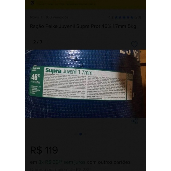 Informações do produto: Ração Peixe Carpa Tilapia Pacu Juvenil Supra 46% 1.7mm 5kg